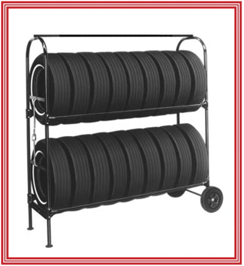 - This handy, economical tire rack tips back to roll to convenient locations between service bay doors, on walkways and storage areas.