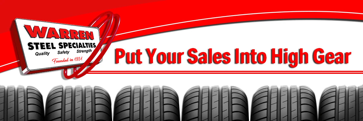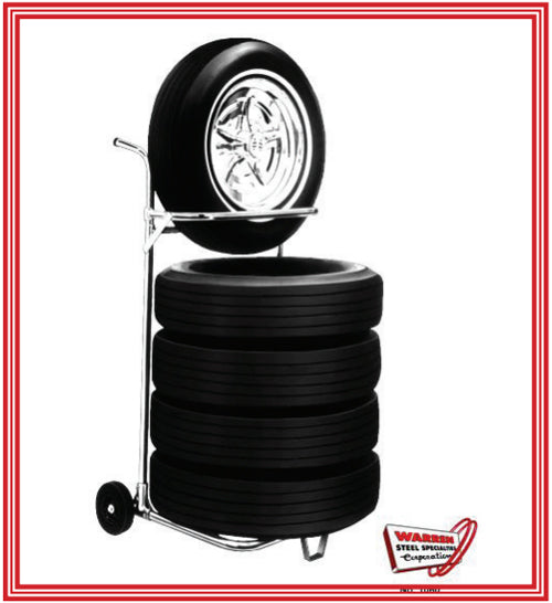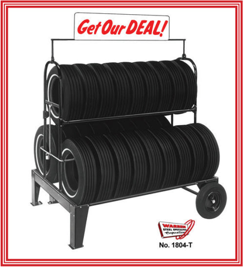 The No. 1804 Three-Tier Tire Rack holds up to nine tires on each tier. This item is made in the USA by Warren Steel Specialties, which has been specializing in tire racks since 1931. This heavy-duty tire rack is perfect for displaying your tire bargains (inside or outside), or for storage. When paired with the optional Tote Jack you can easily move this rack around your shop.